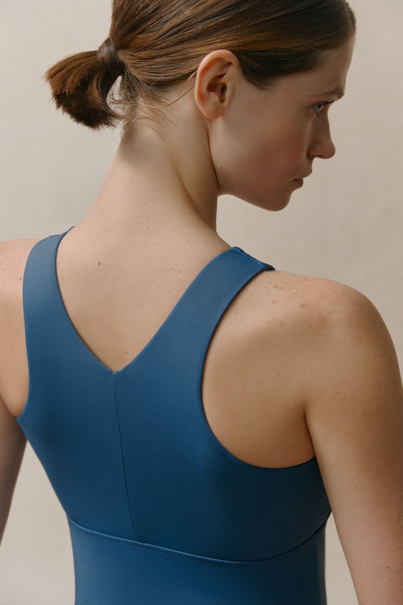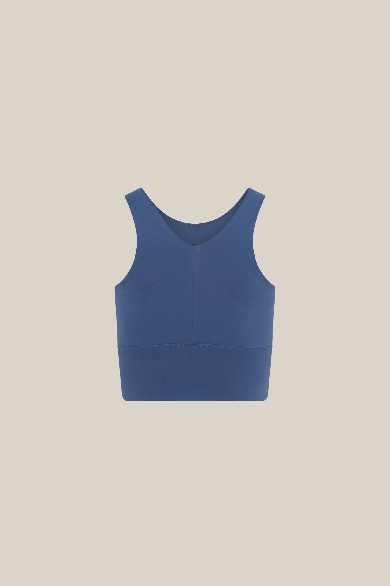 Top cropped con diseño sobrio y elegante con tirantes anchos para una mayor sujeción y comodidad. Tejido “Shape_Tech” con tecnología Performance. Sujeción alta