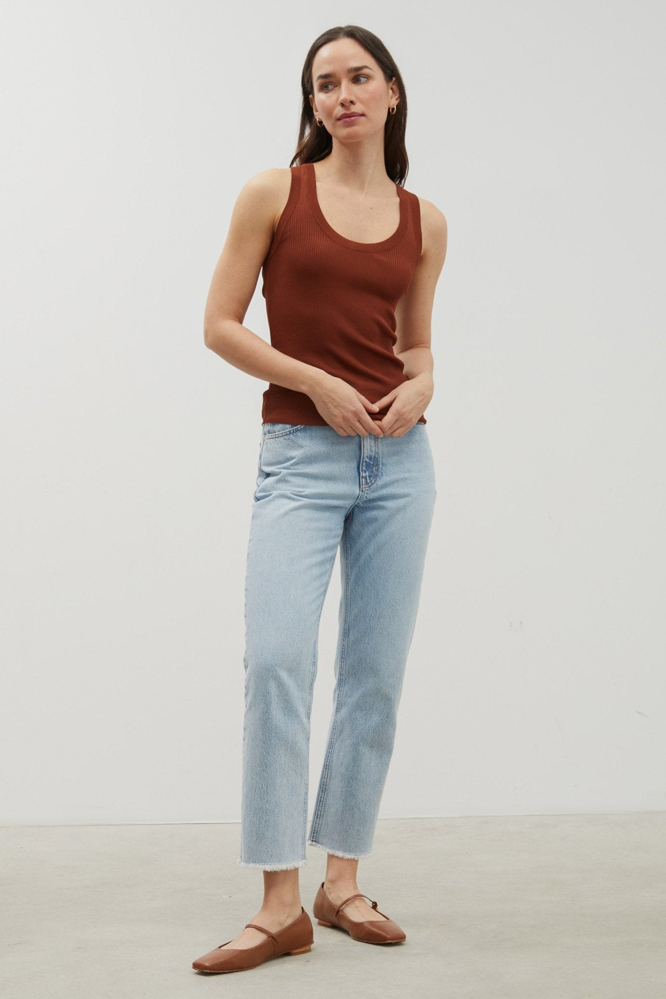 Top de canalé. Corte ajustado. Tirante ancho. Escote abierto. Detalle de logo bordado en el lateral.