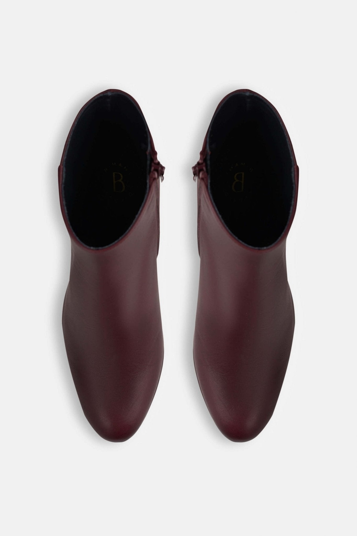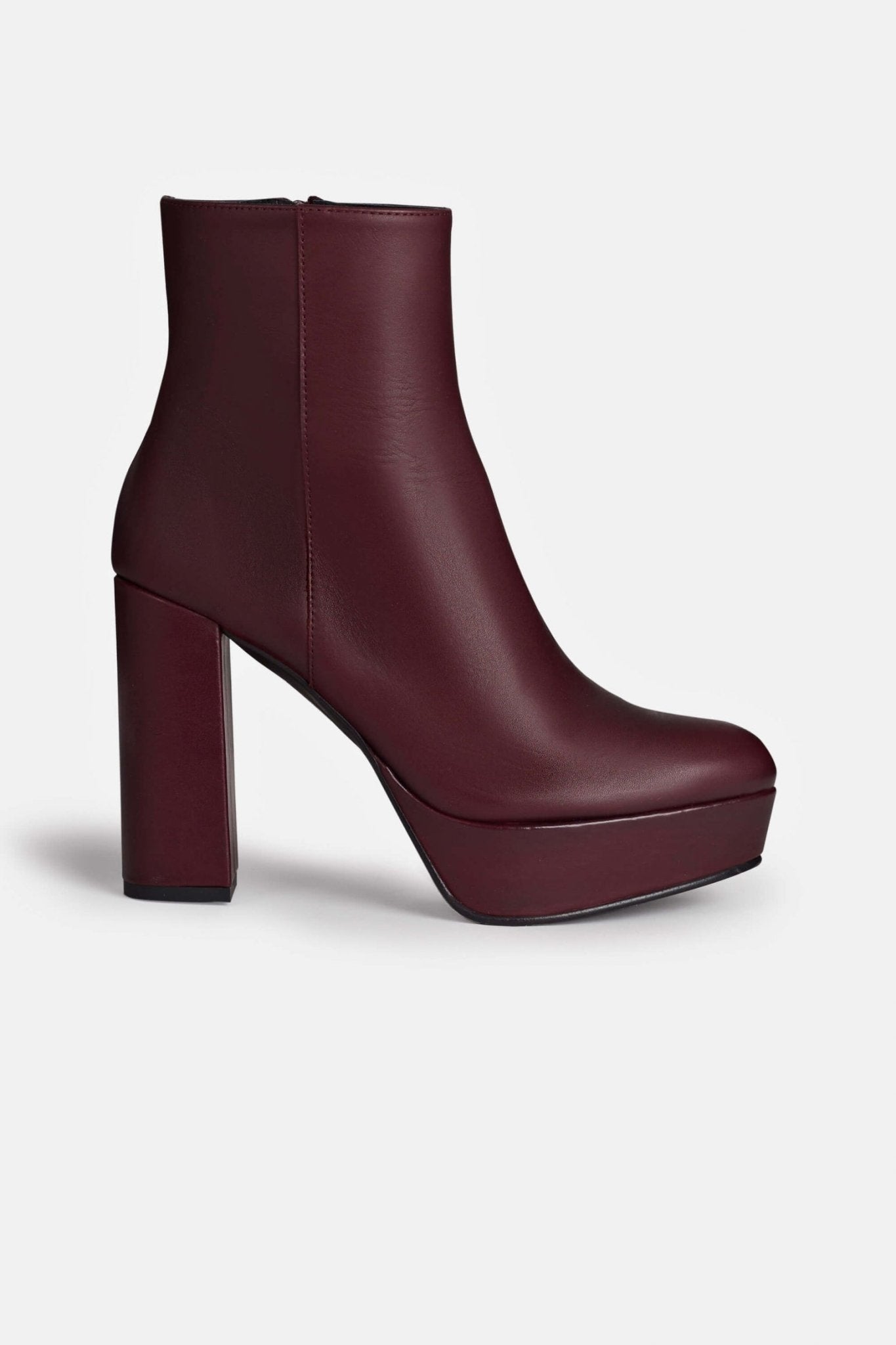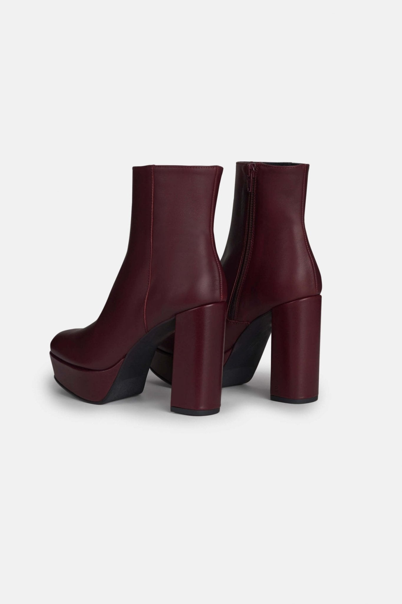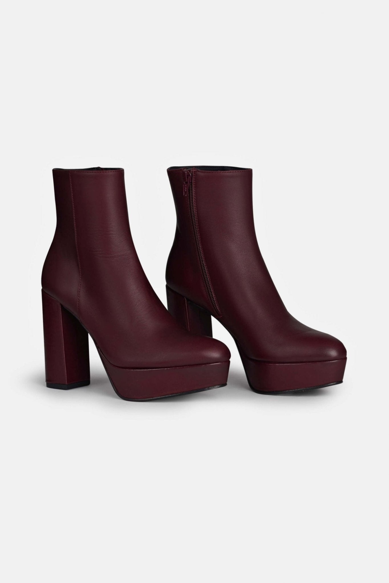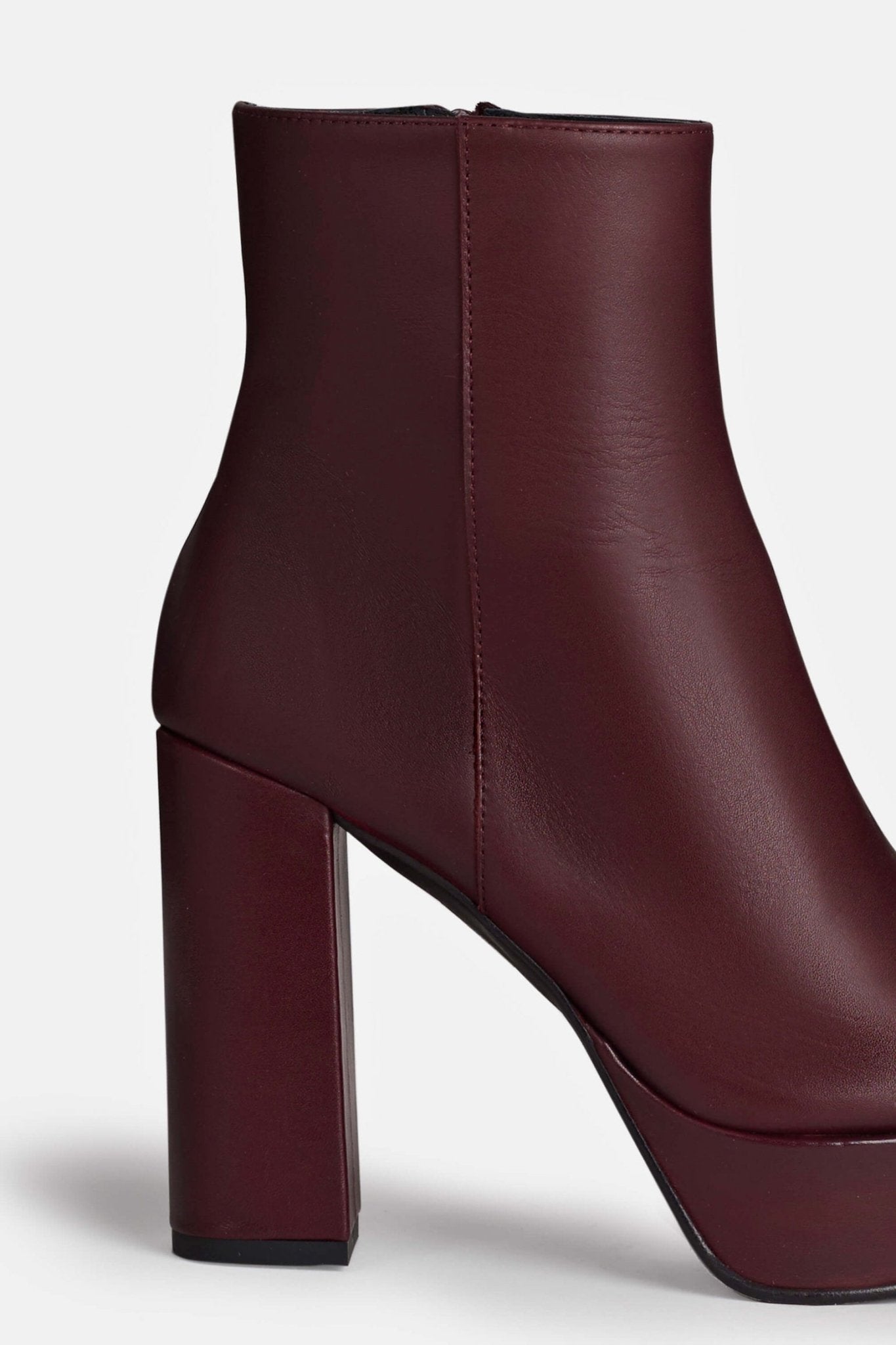 Botín de piel. Cremallera lateral. Caña media. Tacón de 10cm. Plataforma de 3,5cm. Ancho del tacón de 3,5cm.