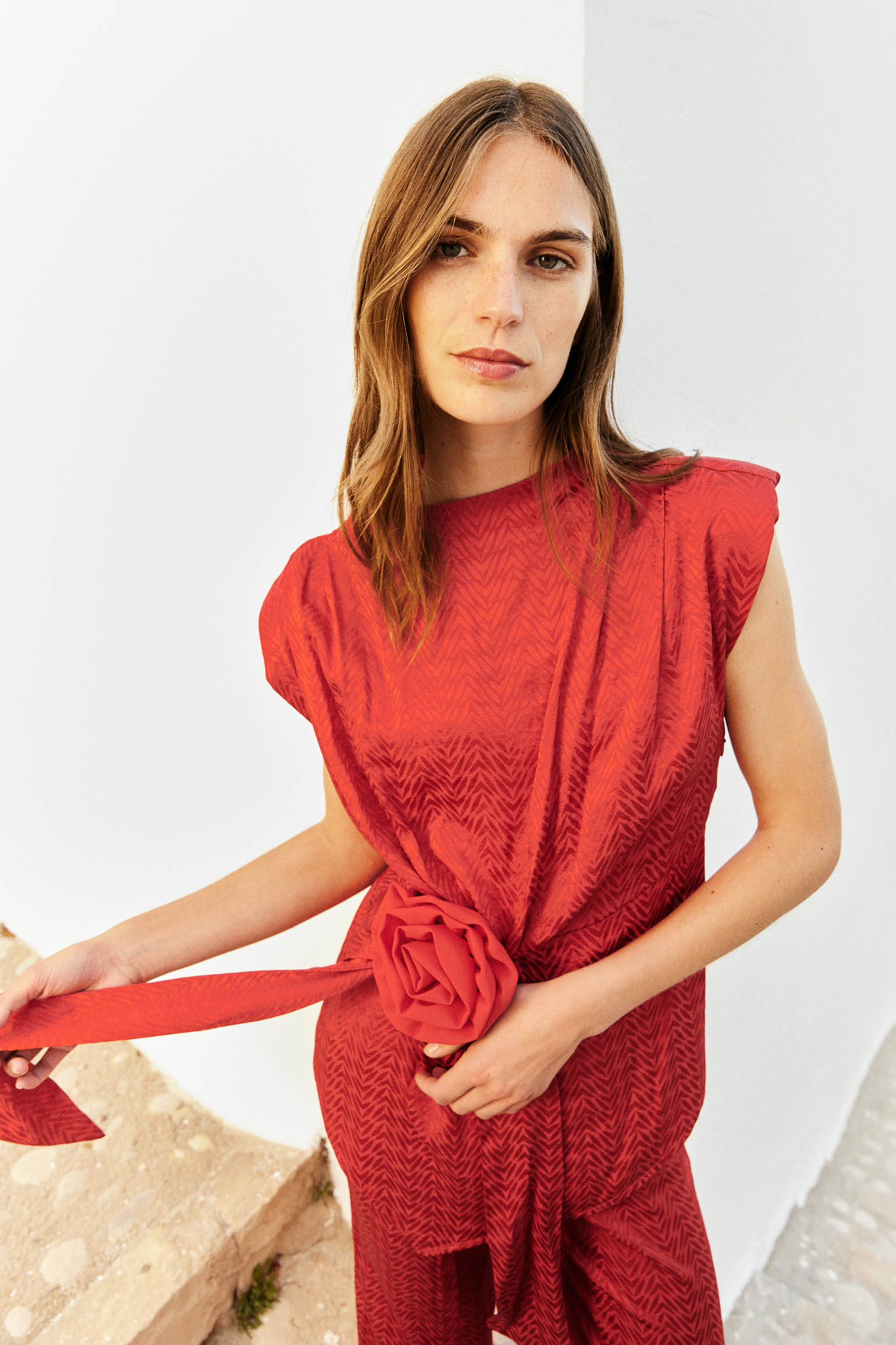 Flor en tejido de gasa con lazada ajustable. Accesorio perfecto para complementar y realzar tus prendas. Medidas 185x5cm.