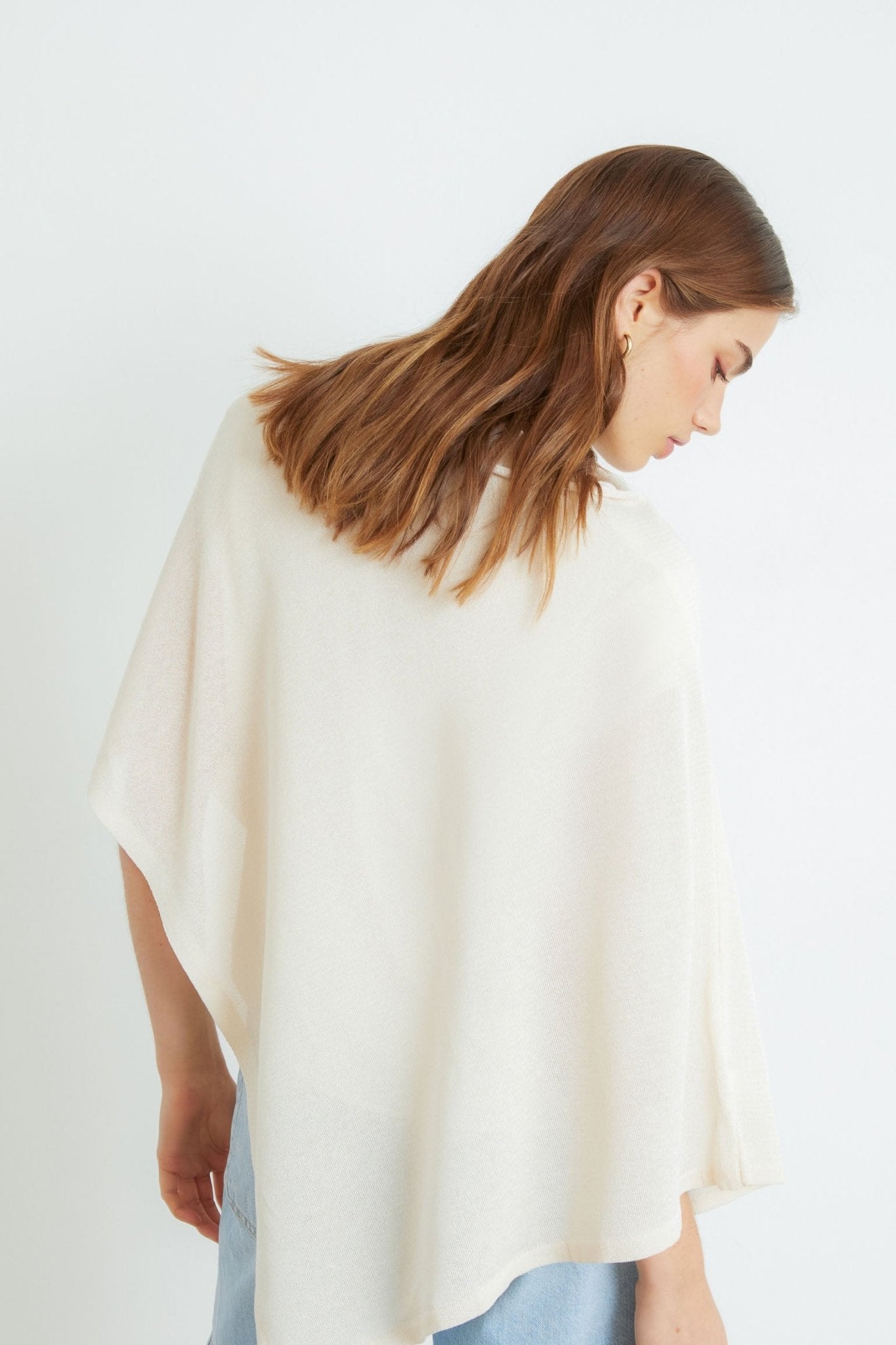 Esta prenda es una pieza rectangular de 75 cm x 60 cm con una abertura central para introducir la cabeza.