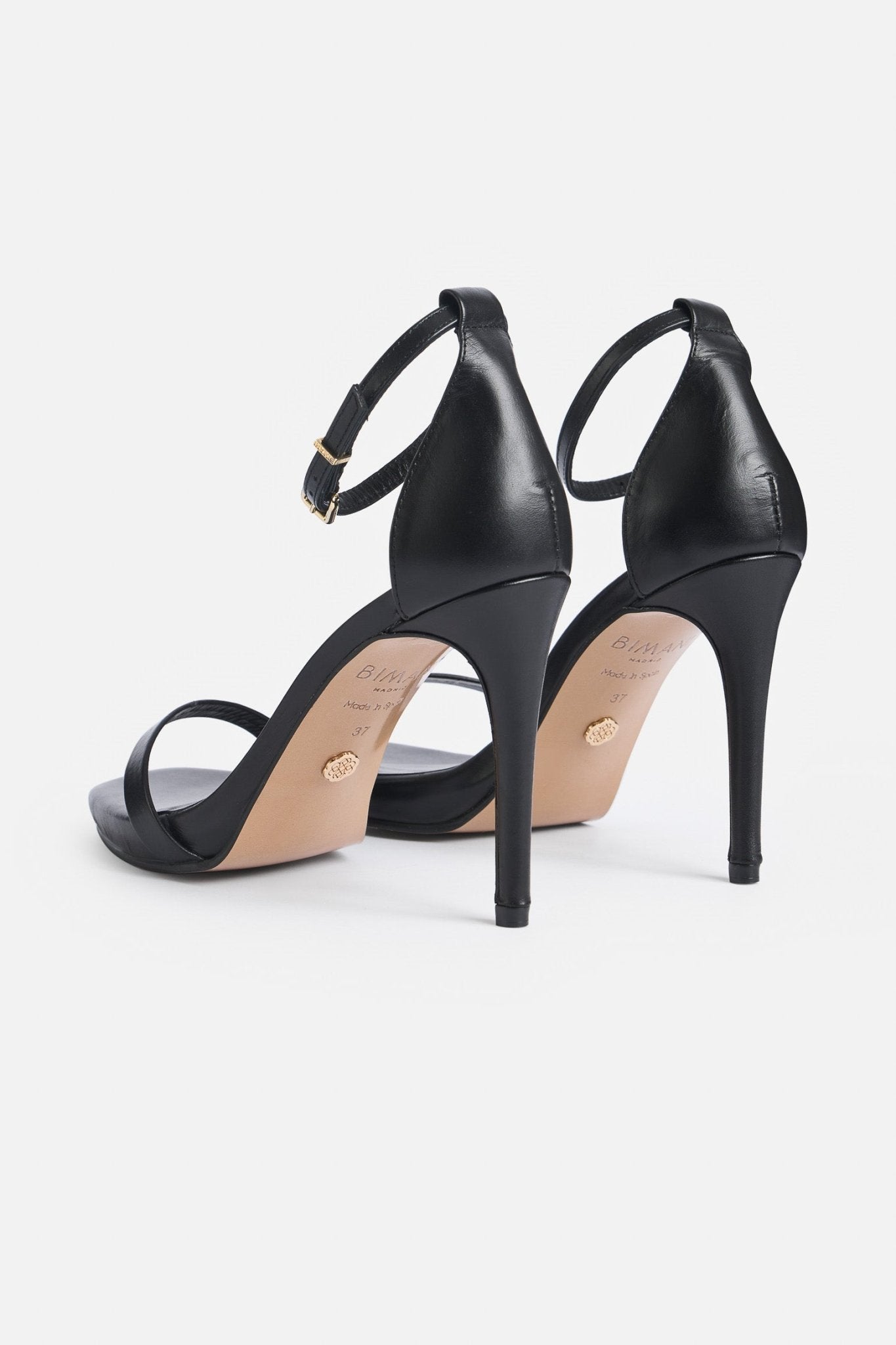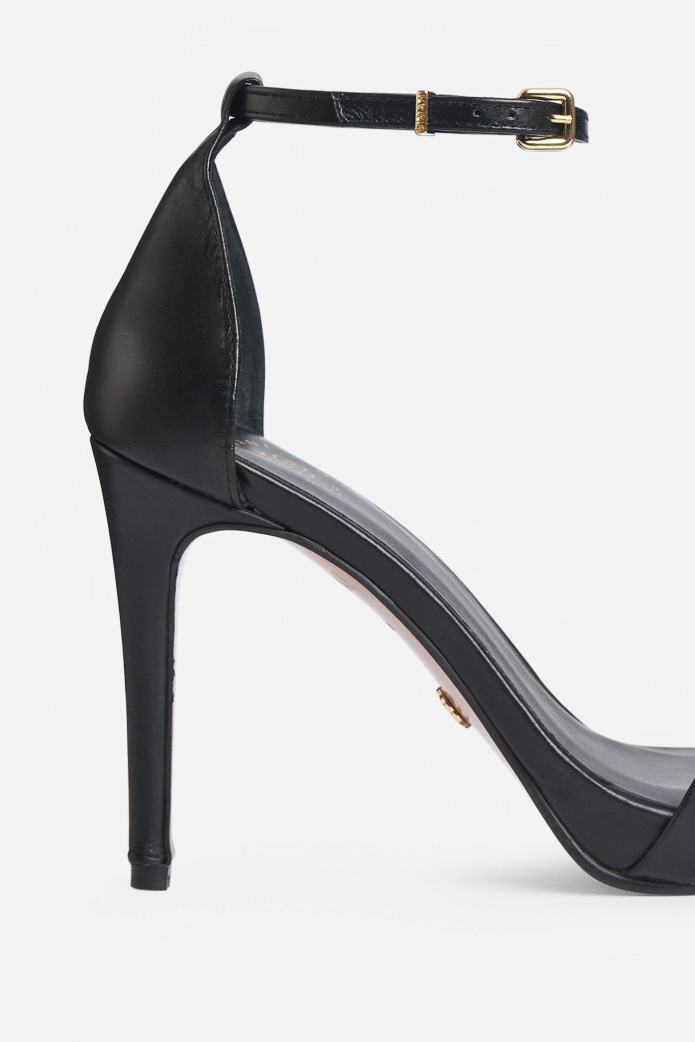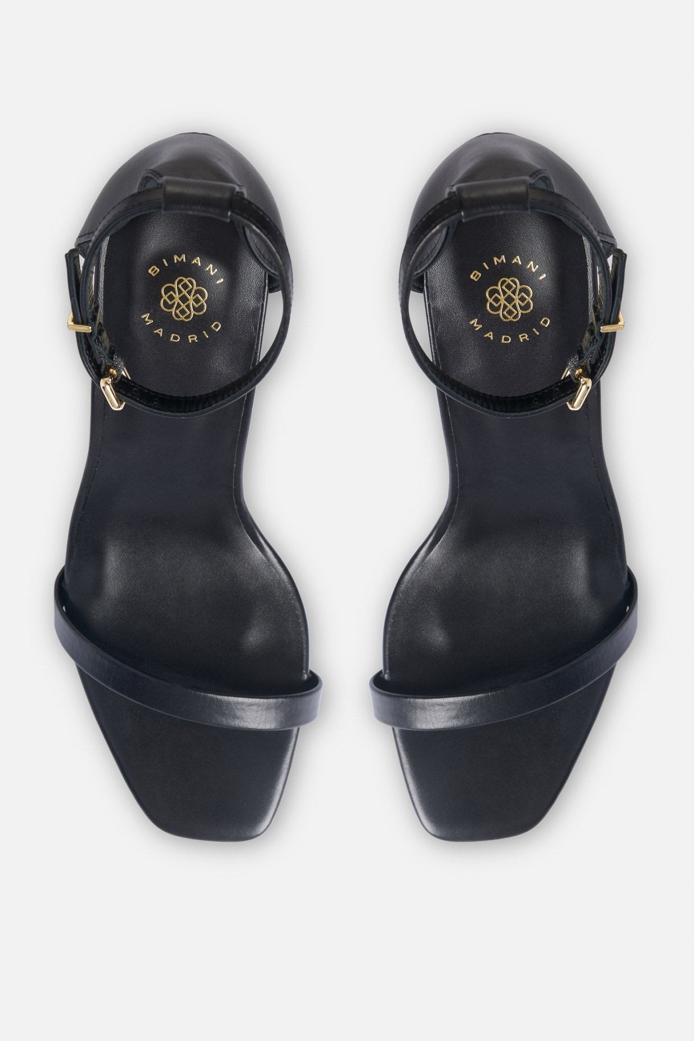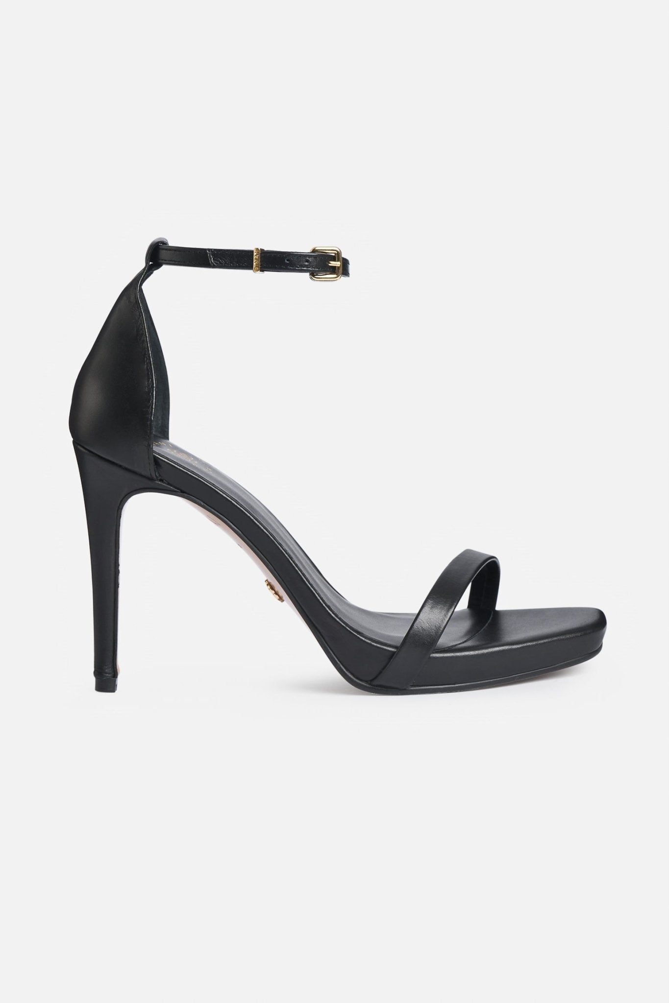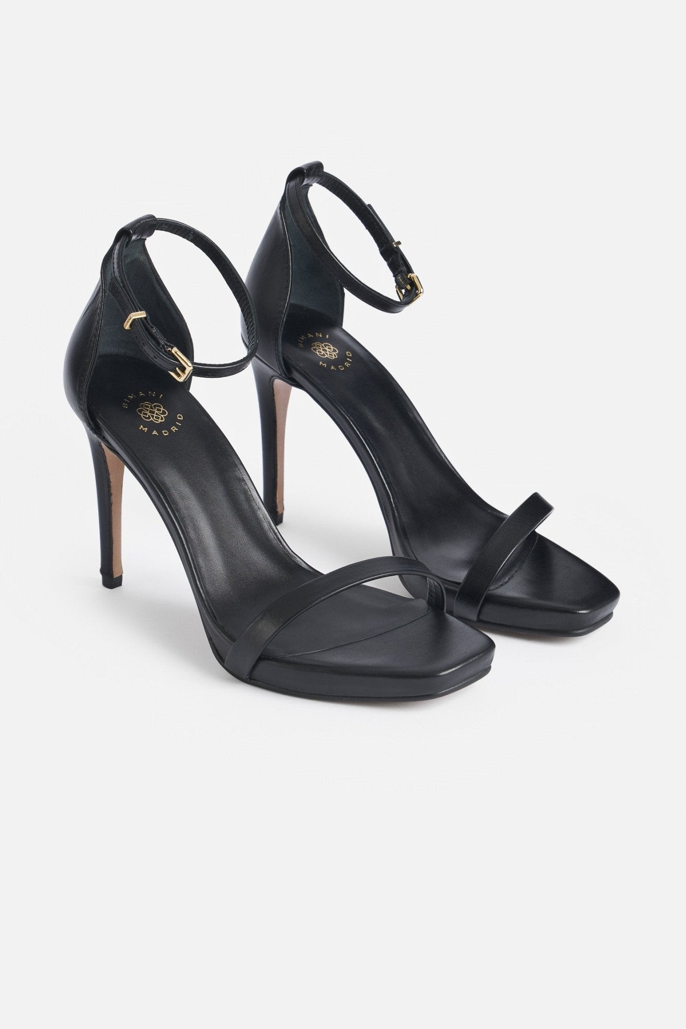 Sandalia de piel. Puntera cuadrada descubierta. Tira fina en el delantero. Talón cubierto. Fina tira abrochada al tobillo. Alto del tacón de 10,5cm. Plataforma de 1,5cm.