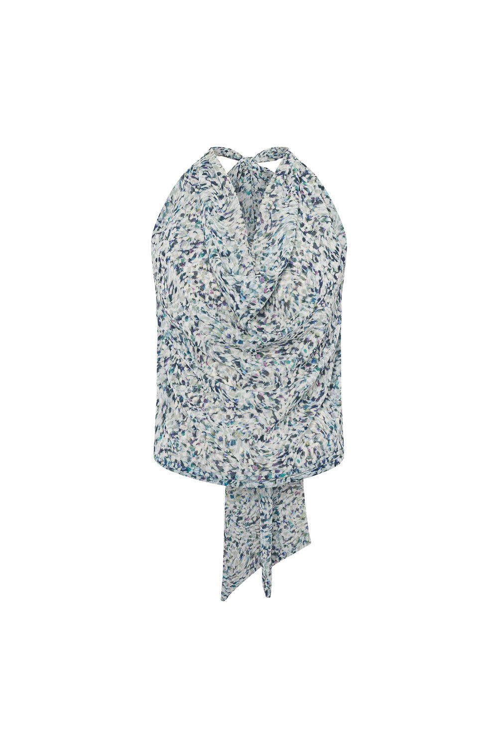 Cierre mediante lazada multiposición anudada en el delantero, y goma en el escote espalda.
