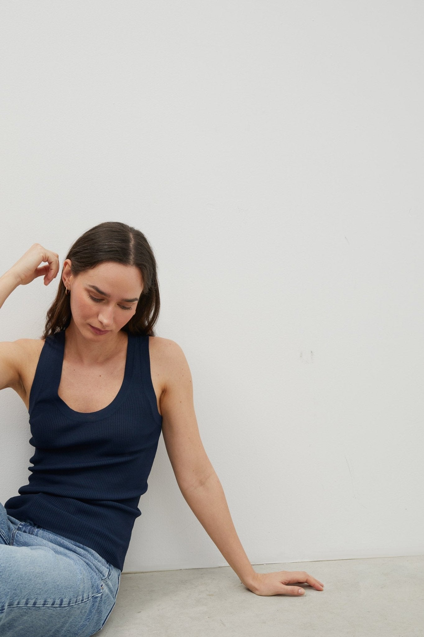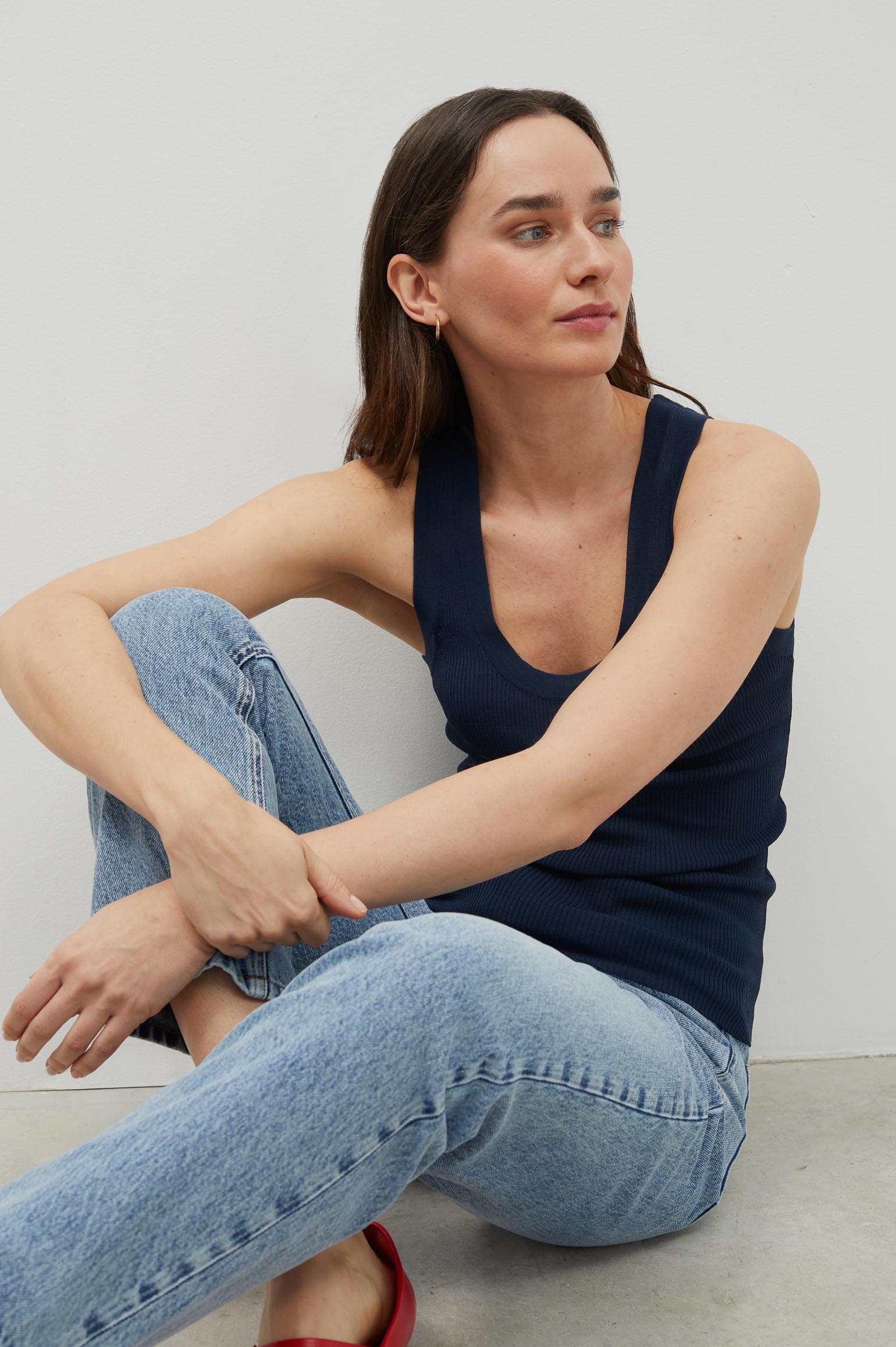 Top de canalé. Corte ajustado. Tirante ancho. Escote abierto. Detalle de logo bordado en el lateral.