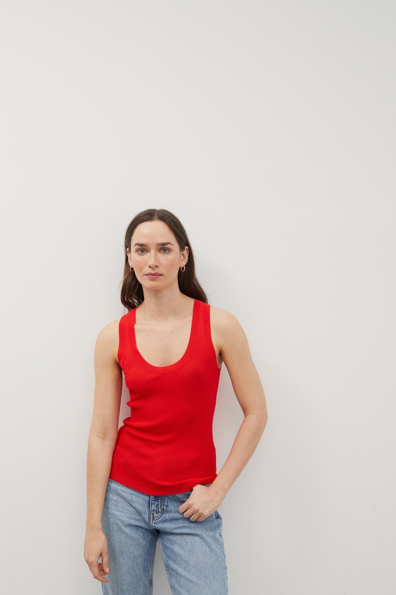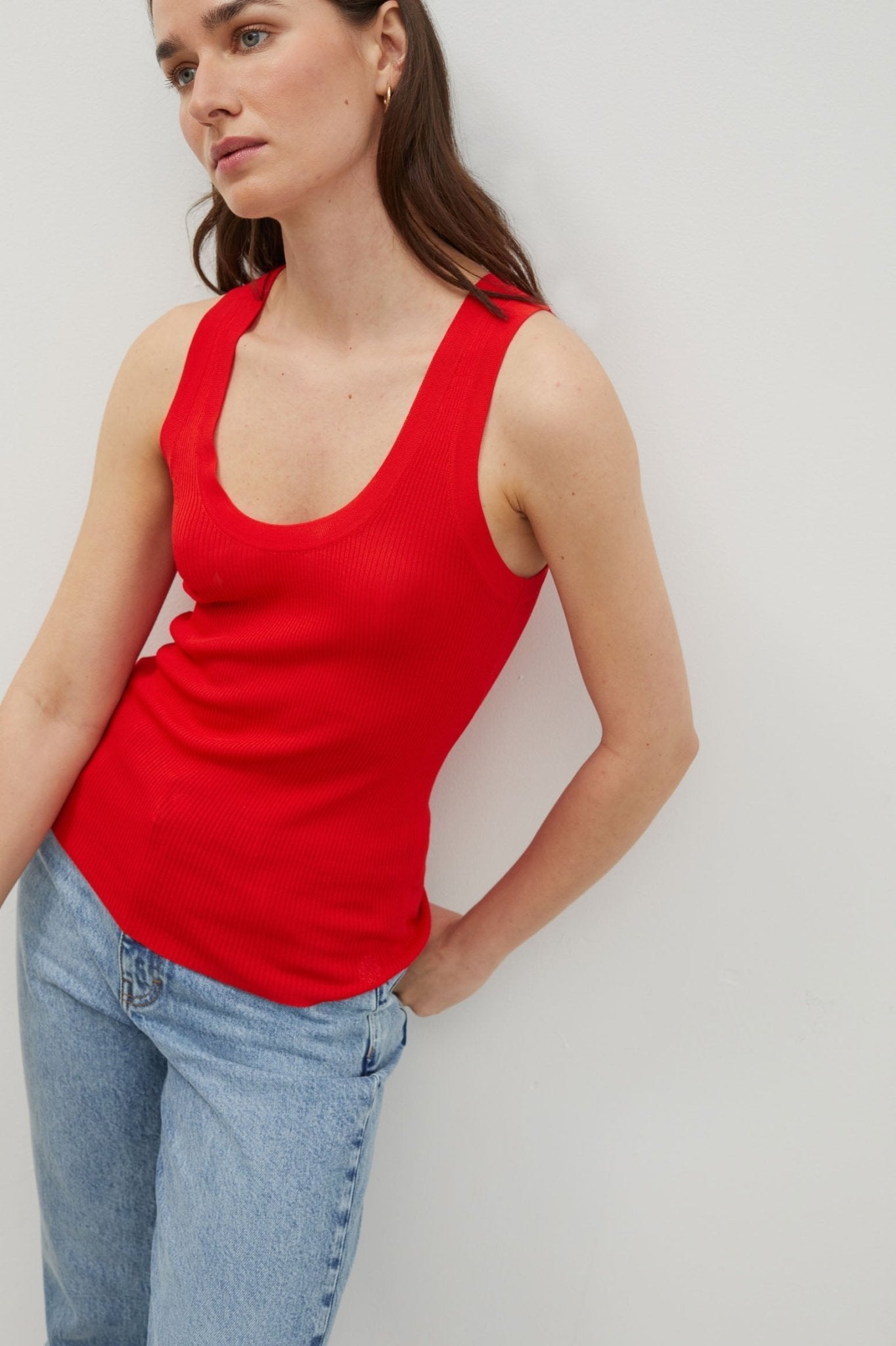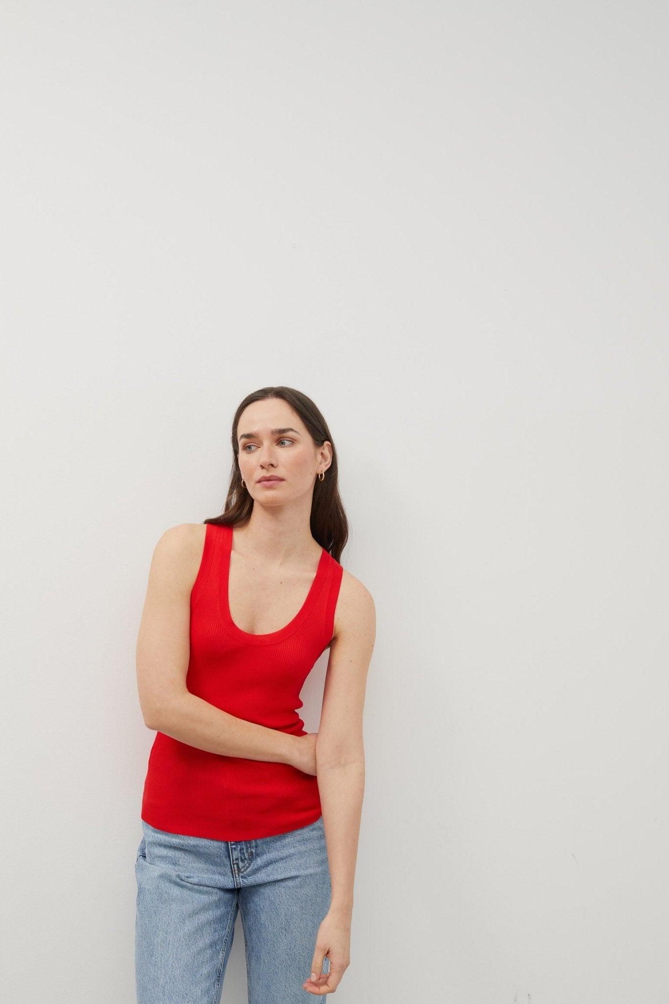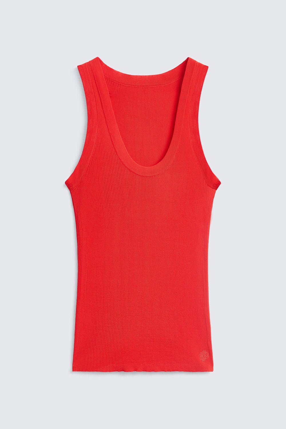 Top de canalé. Corte ajustado. Tirante ancho. Escote abierto. Detalle de logo bordado en el lateral.