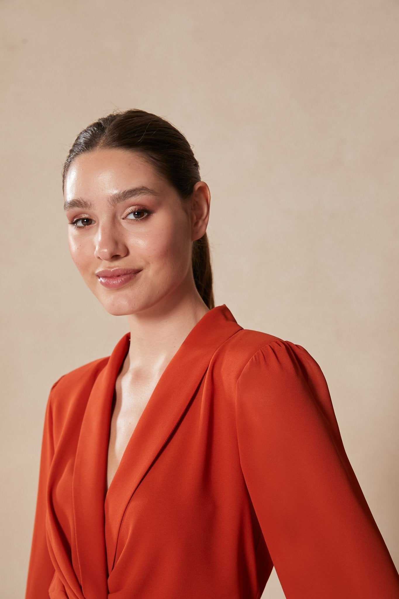 Blusa cruzada, de manga larga con puño con botones forrados.